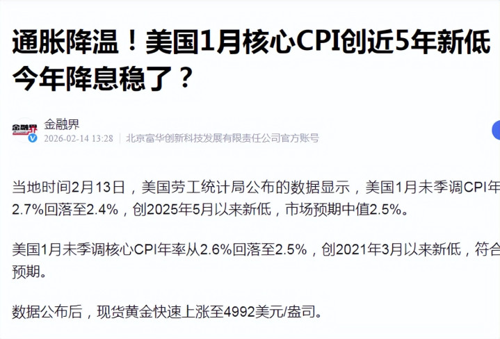 股市最怕两个顶点:① CPI 太高,通胀加重,物价高潮,国度有时率要加息、收紧钱。市集上钱少了, 股市容易跌。② CPI 太低,致使会出现负数,阐发全球不敢用钱,经济转弱。上市公司赚不到钱 , 股市也难涨。比如,好意思国1月CPI数据2月13日公布本日,现货黄金便快速高潮到4992好意思元/盎司。黄金为什么会涨?好意思国 CPI 是好意思联储加息 、降息的中枢依据,好意思国1月CPI为2.4%, 同比旧年 1 月,低于预期 2.5% ,环比上月+0.2%,低于预期 0.3%),这是什么兴趣?这阐发好意思联储有降息(CPI高加息、CPI低降息)预期,钱存银行利息缩短了,不如用来买黄金、买股票,是以会有好意思联储降息利好股市的说法。