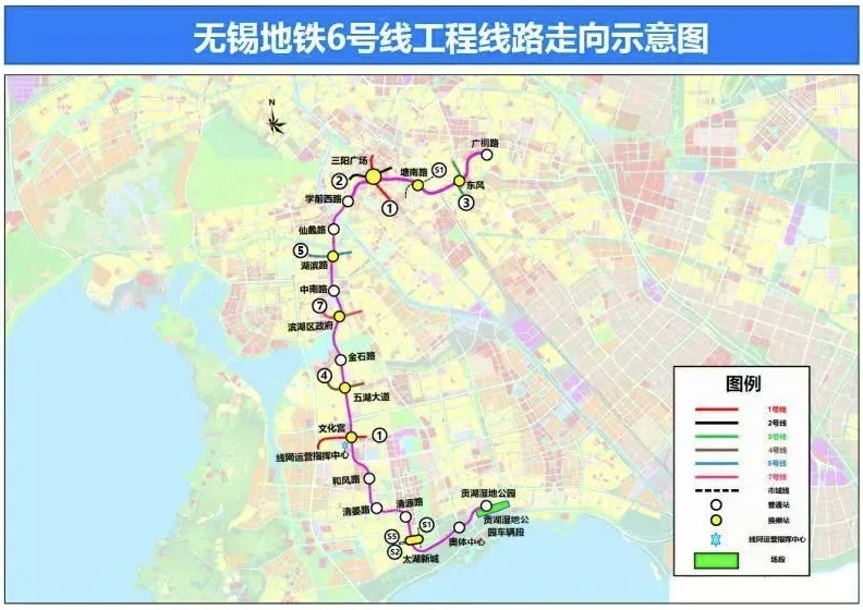 无锡地铁6号线整体呈南北走向,全长24.26公里,共设置18座车站, 线路起于贡湖湿地公园站,向北经华庄街道、雪浪街道、太湖街道、蠡湖街道、河埒街道、惠山街道、崇安寺街道、清名桥街道、江溪街道、广益街道至广桐路站。