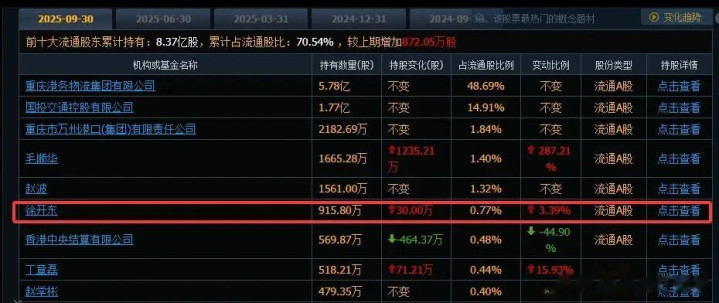 - 持仓情况:2025年三季度加仓30万股,持股915.80万股,第六大通顺股东