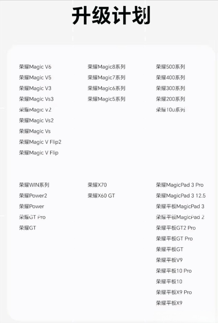 MagicOS升级机型列表 / 摆列可升级MagicOS的荣耀各系列机型