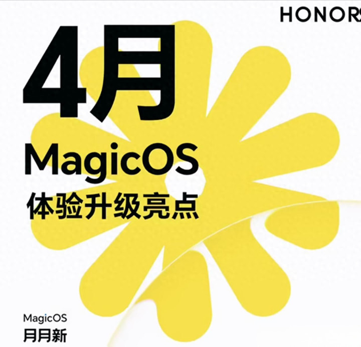 MagicOS4月升级宣传图 / 标注4月MagicOS体验升级亮点,带荣耀秀雅