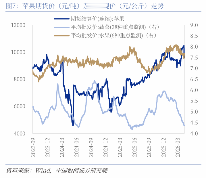 物价推崇:(1)CPI:猪肉、蔬菜价钱不绝下行,鸡蛋价钱出现上行。截止4月18日,猪肉平均批发价周环比着落3.19%,生猪期货价钱上升0.79%。本周猪肉价钱延续着落趋势,但生猪价钱出现一定反弹,主要由集团场阶段性缩量出栏与底部预期建造带动。但从基本面看,能繁母猪存栏仍较高,前期产能对应的出栏压力仍在捏续开释,供给端尚未出现本色性减轻。需求端虽受廉价刺激有所改善,但合座弹性有限,难以变成灵验复旧。果蔬方面,28种要点监测蔬菜平均批发价钱着落2.65%,6种要点监测生果平均批发价着落0.68%,苹果期货结算价钱环比着落1.57%。本周蔬菜价钱延续季节性回落,但降幅有所收窄,主要受供应端阶段性调养影响。产地北移与换茬过程中供给联络存在扰动,导致价钱下行节律放缓。合座来看,在供给冉冉复原顺畅后,菜价仍将守护季节性下行趋势,但短期波动有所加大。此外,本周鸡蛋价钱环比上升3.86%,主要受节前备货驱动,库存同步去化,短期供需偏紧复旧价钱走强。