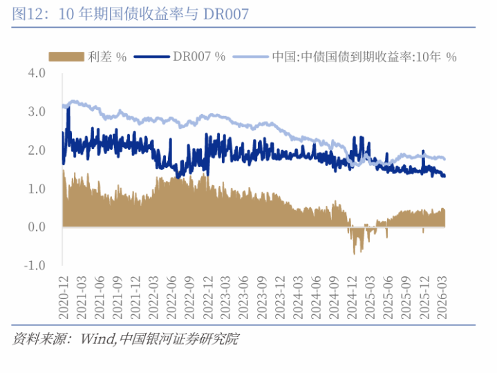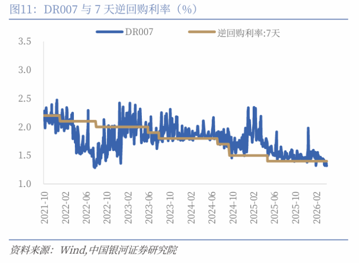本周公开阛阓7天逆回购操作系数净回笼5亿元。本周主要货币阛阓利率与上周基本捏平,其中SHIBOR007收于1.3260%(+1BP),DR007收于1.3201%(-0BP)。银行间质押式回购日均成交量8.72万亿元(前值8.81万亿元),环比上周小幅回落。国债收益率弧线下移,短端、长端均显耀回落。30年期国债收益率收于2.2500%(-6BP),10年期收于1.7623%(-5BP),1年期收于1.1613%(-5BP)。1年期国有银行同行存单刊行利率收于1.48%(+1BP),环比延续回落。