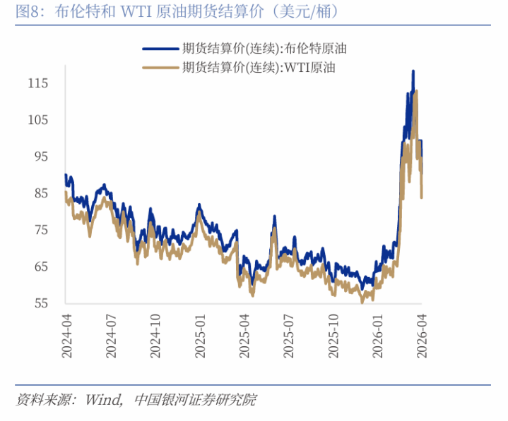 (2)PPI:原油价钱大幅回落,有色价钱有所反弹。截止4月18日,WTI原油环比着落10.51%,布伦特原油环比着落5.16%。本周油价大幅回落,中枢在于霍尔木兹海峡通航预期改善及好意思伊谈判进展,前期由“断供预期”推升的地缘风险溢价快速回落。跟着油轮履行通行、供应敛迹角落缓解,订价逻辑由地缘驱动顾忌基本面。但油价波动仍取决于谈判完了与航说念安全,若局面反复,价钱仍可能出现再度建造。玄色系商品方面。焦煤、焦炭、铁矿石、螺纹钢价钱环比区分上升0.26%、上升0.81%、着落1.15%、上升0.02%。本周双焦价钱呈现先抑后扬、震憾回升方法,焦炭推崇相对强于焦煤,主要受低库存与提涨预期复旧,而焦煤在供应宽松配景下反弹力度有限。铁水产量守护高位,对原料端变成刚性需求复旧,但钢厂利润偏弱压制上行空间。合座看,双焦仍处供需博弈阶段,短期延续震憾偏强但分化运行。有色等工业居品方面,本周铜、铝价钱环比上升6.17%、上升1.62%。本周铜铝价钱均受好意思元走弱与地缘风险松驰带动的宏不雅心思建造驱动。基本面上,铜受矿端扰动与国内去库复旧更强,铝则在低库存与国外减产预期下守护偏紧方法。需求端合座呈现情切建造但弹性有限,更多以刚需复旧为主。此外,水泥价钱着落0.46%,玻璃价钱环比着落0.40%。