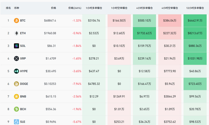 从昨天晚上运转,编造币再度走弱。比特币一度跌破6.9万,以太坊更是大跌近6%,并再度跌破2000好意思元。其他主要币种集体杀跌。左证CoinGlass数据统计,最近24小时,大家共有117523东谈主被爆仓,爆仓总金额为3.32亿好意思元。