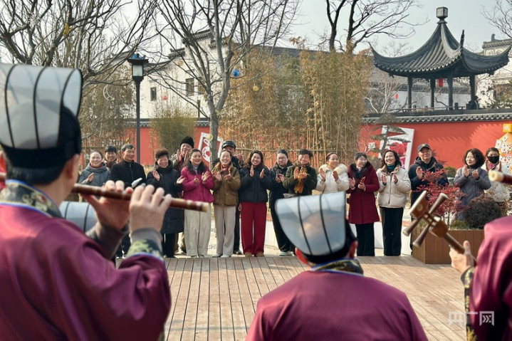 央广网淮安2月17日音书(记者顾炀威)新春时节,江苏淮安河下古镇游东谈主如织。一阵高昂明快的乐声从街巷深处传来——笛子澄清,二胡缱绻,笙箫和鸣;忽而锣饱读皆发,怡然四起,热干豫闹地撞进游东谈主的耳中。